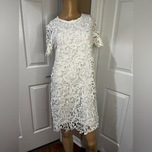 Zara White Sheath Lace Midi Dress with Flutter Sleeves sz small