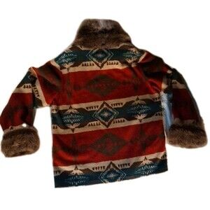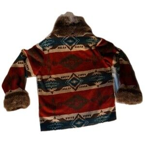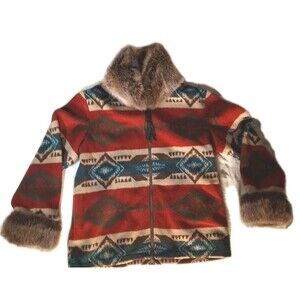 Tasha Polizzi Jacket Womens XL Southwest Blanket Red Aztec Faux Fur