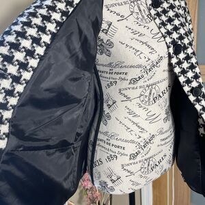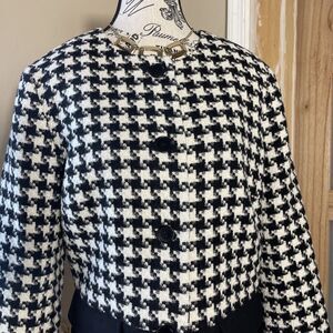 Talbots Black White Color Block Houndstooth Wool Blazer Jacket Size 12 Lawyer