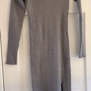 Excellent condition grey eco-knit ribbed mock neck sweater dress. Soft, stretchy, small size - true to size. I've worn it maybe 3x but it's just not my style.