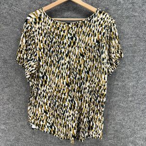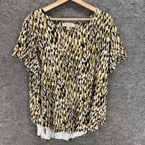 Philosophy T-Shirt Women 2X Plus Black Geometric Short Sleeve Round Neck Rayon