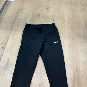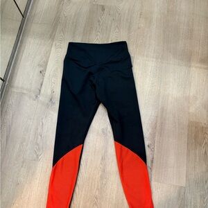 Sleek black leggings with bold orange details. Size medium. In good WORN condition.