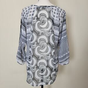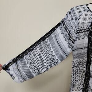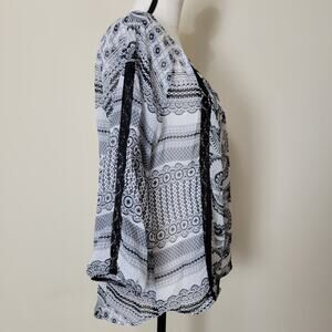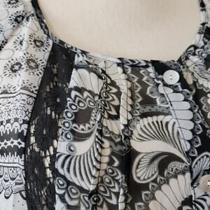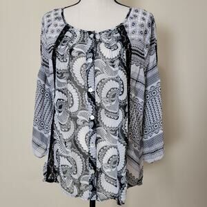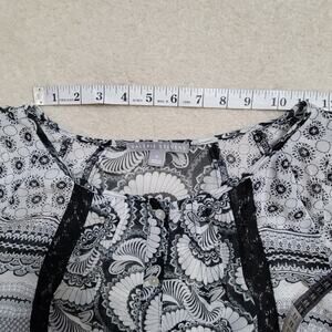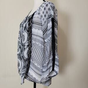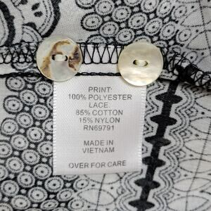 Valerie Stevens M Button Front 3/4 Raglan Sleeve Scoop Neck Lace Blouse Top