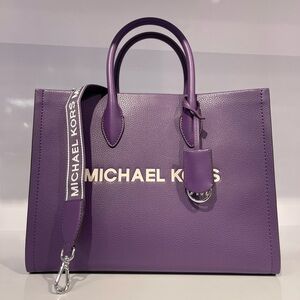 MICHAEL KORS Mirella Medium EW Pebbled Leather Tote Bag Dark Purple NWT