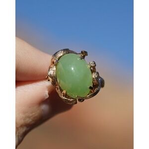 Ring size: 6.25 (US). Perfect statement piece with timeless organic design—ideal for collectors or everyday luxury wear. A bold, wearable vintage-style beauty combining nature-inspired goldwork with premium jadeite charm.