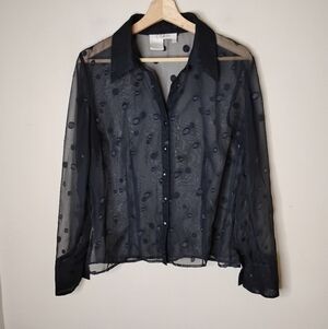 Como Vintage Sheer Black Blouse Size L Polka Dot Whimsy Fairy Grunge