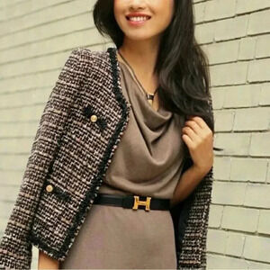 Talbots Women’s Tweed Fringe Blazer with Signature Accent Buttons Collarless