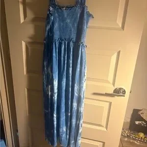 Stylish blue tie-dye maxi skirt. Flowy and comfortable. Ideal for casual outings.