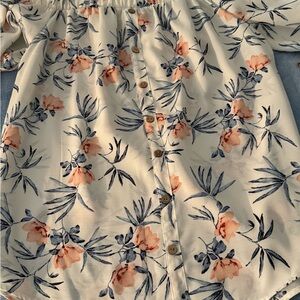 Freshen up your wardrobe with this Iz Byer floral off-shoulder blouse, perfect for spring and summer styling.