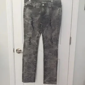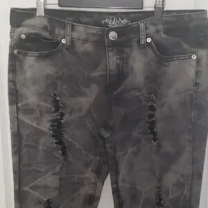 Do Denim Distressed Charcoal Grey Acid Wash Jeans