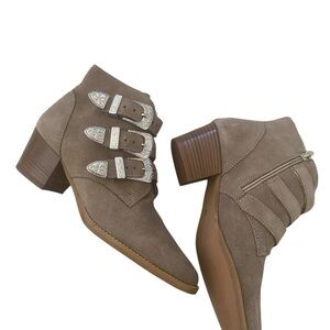 ASOS Triple Buckle Suede Western Ankle Boots Taupe Size 5 | Made in Italy