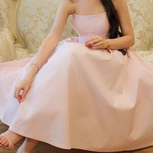 This elegant pink midi dress is perfect for any occasion. Its soft hue adds a touch of femininity and grace. Great for wedding guest or bridal party. Sizes (S, M, or L)!