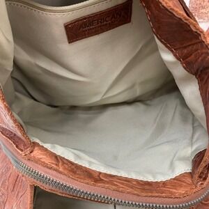 VTG American Leather Co Tote Bag Embossed Floral Brown Leather Shoulder Bag