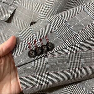 Elevate your style with this sophisticated men's plaid blazer. Perfect for any occasion, this gray blazer offers a classic and versatile look. Item is marked 42S; it is preowned and has a tiny pull on the back, otherwise in excellent condition. Don't think it has ever been worn, pockets are still sewn shut. It is fully lined and has shoulder pads.