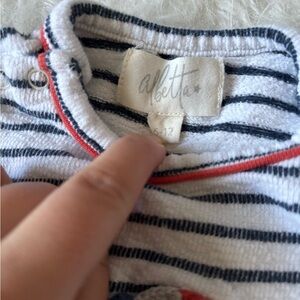 Keep your little one snug in this cozy striped jumpsuit. The black and white pattern offers a timeless look, perfect for any occasion. VGUC no rips, stains or marks. Pet free and smoke free home