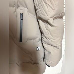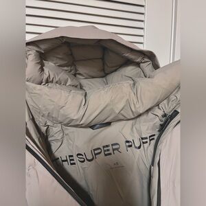 The Aritzia SuperPuff 2O Mid-Rainstop in the color Modern Taupe. Lightly worn but still has lots of life left!! The down is puffy and warm - it’s the perfect winter coat, i’m just looking for something different! No signs of tears or damage on the exterior. Fits true-to-size!
