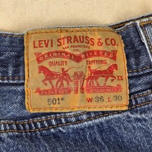 Classic Levi Strauss Co 501 men's jeans in a versatile blue wash. These iconic jeans feature a button fly and a traditional original fit, offering timeless style and comfort. Perfect for everyday wear, casual outings, or a relaxed weekend look.