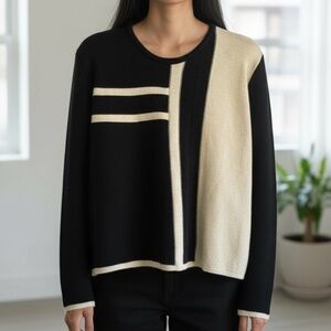 Elegant black and cream sweater perfect for any occasion. Soft and comfortable fabric for all-day wear.