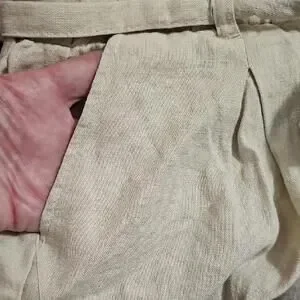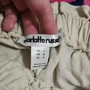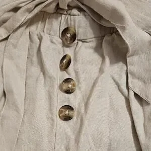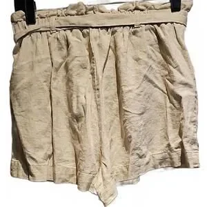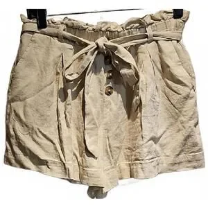 These cream shorts feature a high-waisted design with a stylish tie waist, offering a relaxed and comfortable fit. Made from lightweight fabric, they are perfect for warm, casual days.