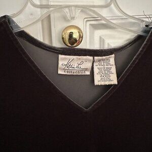 Kathie Lee Collection Womens Velvet Short Sleeve V Neck Top Gray Plus Size