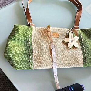 Super cute bag with detachable matching key ring, and a 12" strap drop. Interior needs a cleaning, but bag is in EUC!. C1Bags.8221