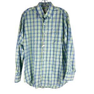 New Peter Millar Long Sleeve Button Up Shirt Check Pattern Green Size M