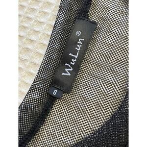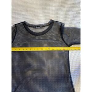 WuLun Mesh Black Crew Neck Short Sleeve Whimsy Goth Style Swim Coverup Small