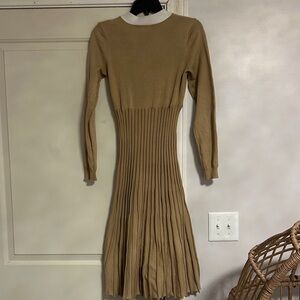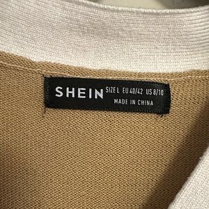 SHEIN Camel Long Sleeve Dress with Ivory Trim