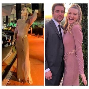 Reformation Women's Kinsey Lace Up Knit Maxi Dress Metallic Pink Sparkle Size S