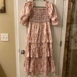 This is a catch and release for me. I just got it in the mail and it does not fit. Original owner wore once and it still has the dry cleaning tag attached. It has a beautiful pink and blue wreath pattern.