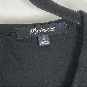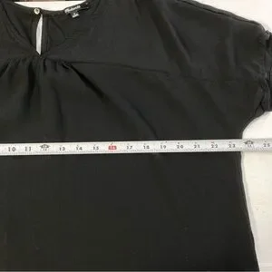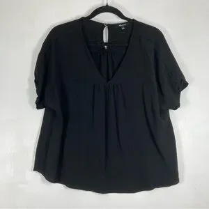 Madewell Blouse Women’s Viscose Shirred Black V-Neck Short Sleeve Back Keyhole M