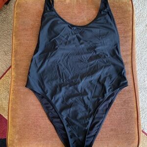XHILARATION: NWOT Black Swimsuit with Plunge Back- Sz XL. Sexy plunge back. Adjustable straps. Padded bust with removable pads. Never used, tags removed. Made of spandex and polyester.