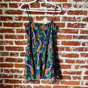Urban Outfitters Moxie Mesh Mini Slip Dress with an abstract multi-colored print