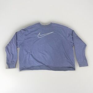 The Nike Women's Dri-Fit Get Fit Cropped Graphic Crewneck Sweatshirt in size medium is a stylish and comfortable pullover sweatshirt designed for women. Made from a blend of polyester, spandex, and cotton, this sweatshirt features a solid purple color with the iconic Nike logo embroidered on the front. It is suitable for various occasions such as travel, activewear, and casual wear. The oversized fit and crewneck design make it perfect for the fall and spring seasons, adding a touch of sporty style to your wardrobe. Easy to care for with machine washable fabric, this sweatshirt is a versatile and trendy addition for any woman's closet.