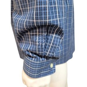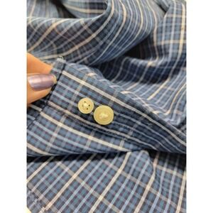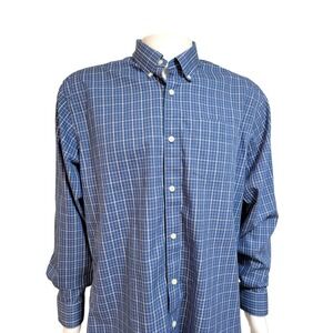 Eddie Bauer Oxford Shirt Mens L Legend Wash Button Down Cotton Casual Blue Plaid