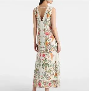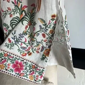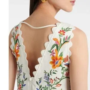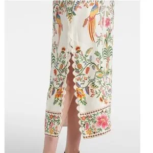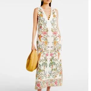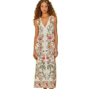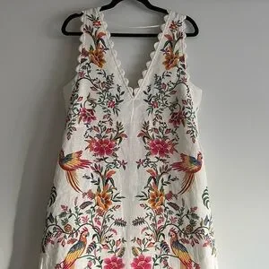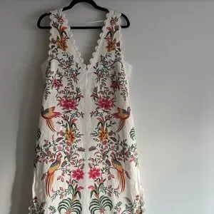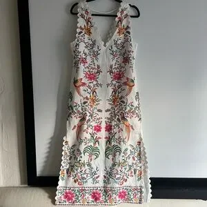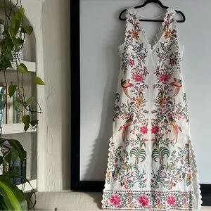 Brand new with tags! $270 retail. Oh my I absolutely love this dress. Such great quality and gorgeous in person. Very flattering. Boasting lively floral and bird prints, this sleeveless dress exudes a bohemian-maximalist vibe perfect for resort escapes, celebrations, or everyday flair. The V-neckline with scalloped edges and regular fit lend a distinctively eclectic touch to its light-colored base for standout appeal.