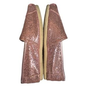 Comfortable pink loafers with a sparkling finish. Fun and stylish for everyday wear.