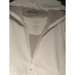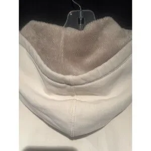 LL Bean Women’s XL Faux Fur Lined Full Zip Hoodie Off White Pockets Retro Y2K