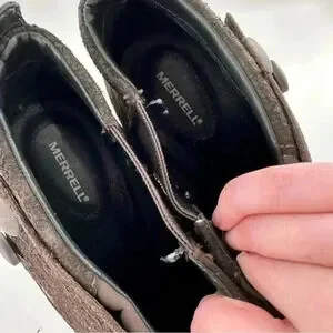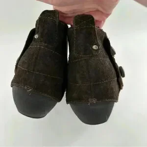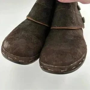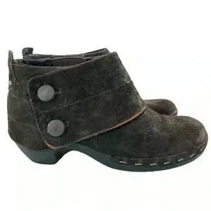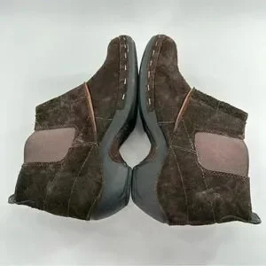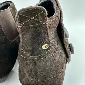 Merrell Luxe button ankle bootie size 10 41 espresso brown suede stapled clog boot
