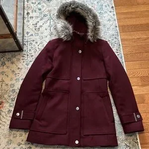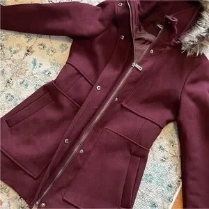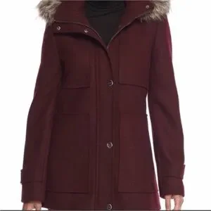 Kenneth Cole Wool Jacket with Detachable Faux Fur Trim Hood