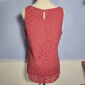 Ann Taylor Loft Medium Light Coral Lace Overlay Keyhole Scoop Neck Tank Top
