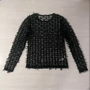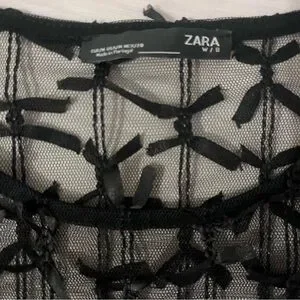 ZARA Sheer Bow Mesh Long Sleeve Crew Neck Layering Top in Size M HOLIDAY PARTY