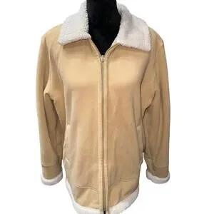 ESPRIT Women’s Sherpa Lined jacket full zip pockets Beige Ivory XL Warm Cozy