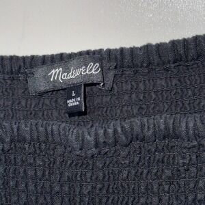 Madewell Lucie Black Smocked Square Neck Flutter Sleeve Linen Blend Midi Dress L