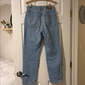 Chic straight leg design. Light blue denim. Versatile and stylish.