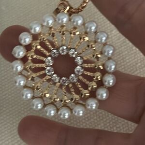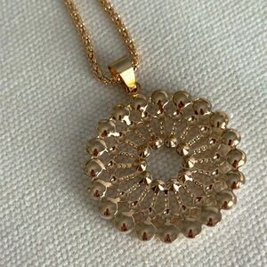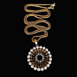 Men’s Gold Tone Faux Pearl Medallion Necklace, 30” Chain, Vintage Boho Rockstar