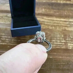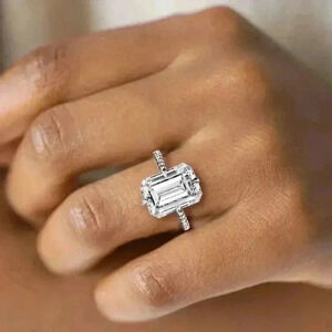 Italo Jewelry Hidden Halo Emerald Cut Engagement ring and open pave wedding band set, size 6