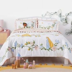 Beautiful Disney Pillowfort Princess vines comforter set, size twin. Includes comforter and 1 sham. Adorable design with floral accents and so many of our favorite princesses, I included a picture of Cinderella and Gus Gus! Soft and cozy for a magical bedroom touch.