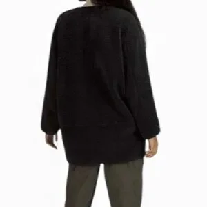Lululemon Collarless Textured Fleece Full Zipjacket in black. It features a plush, textured fleece material with a smooth center panel and a full zip closure.