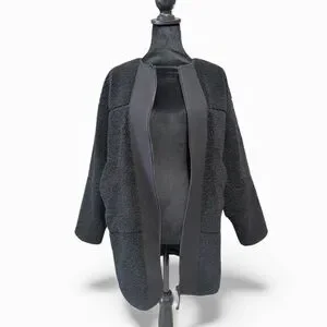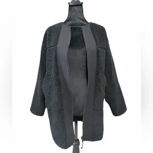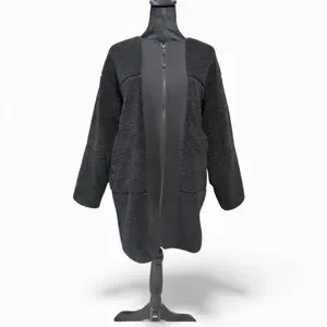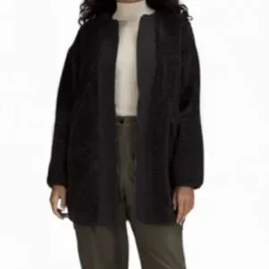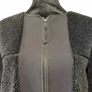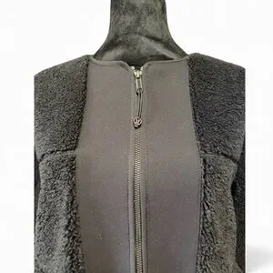 Lululemon Collarless Textured Fleece Full Zipjacket in black,Size 4